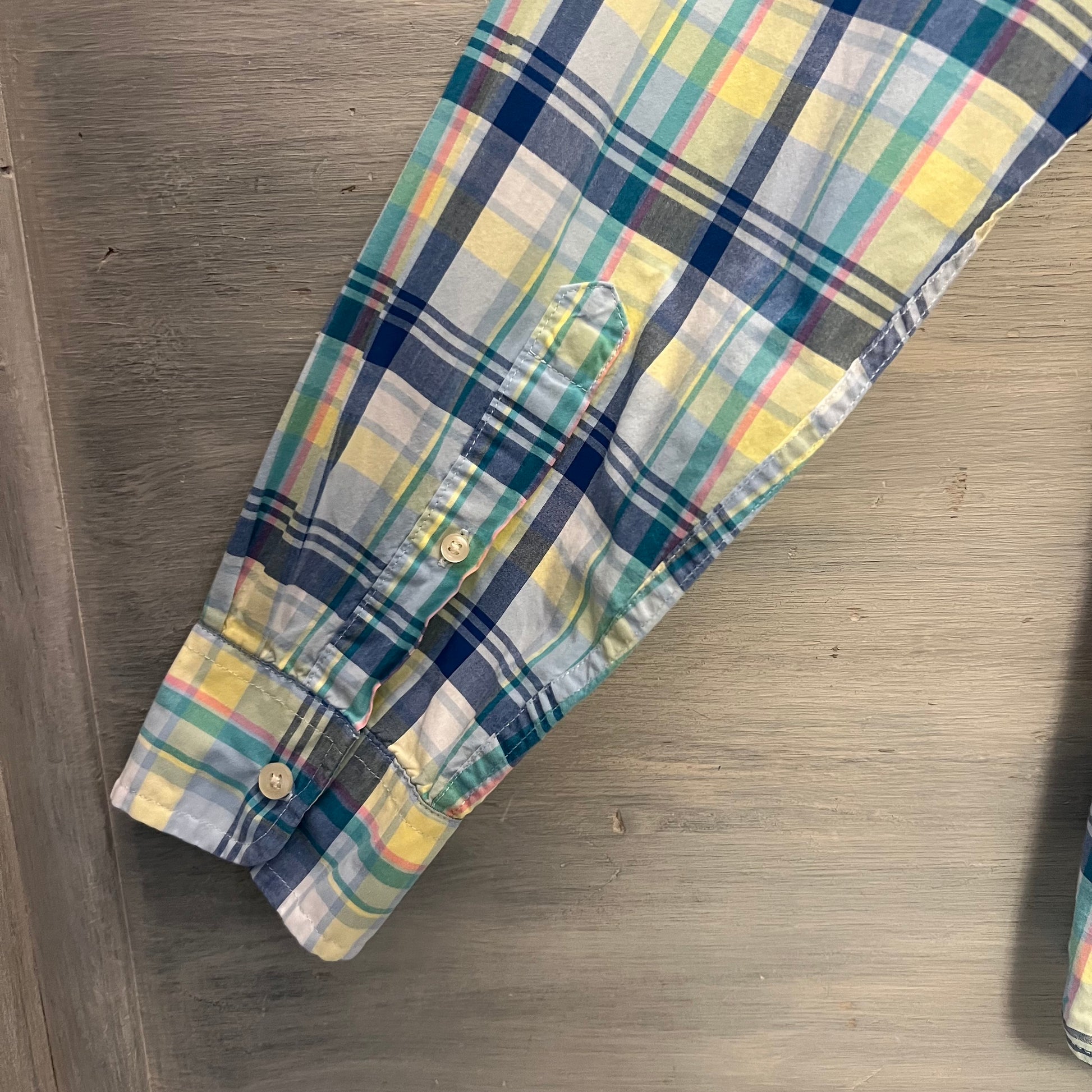 St. John’s Bay Comfort Stretch Pastel Plaid Button Down Shirt Medium Good Condition