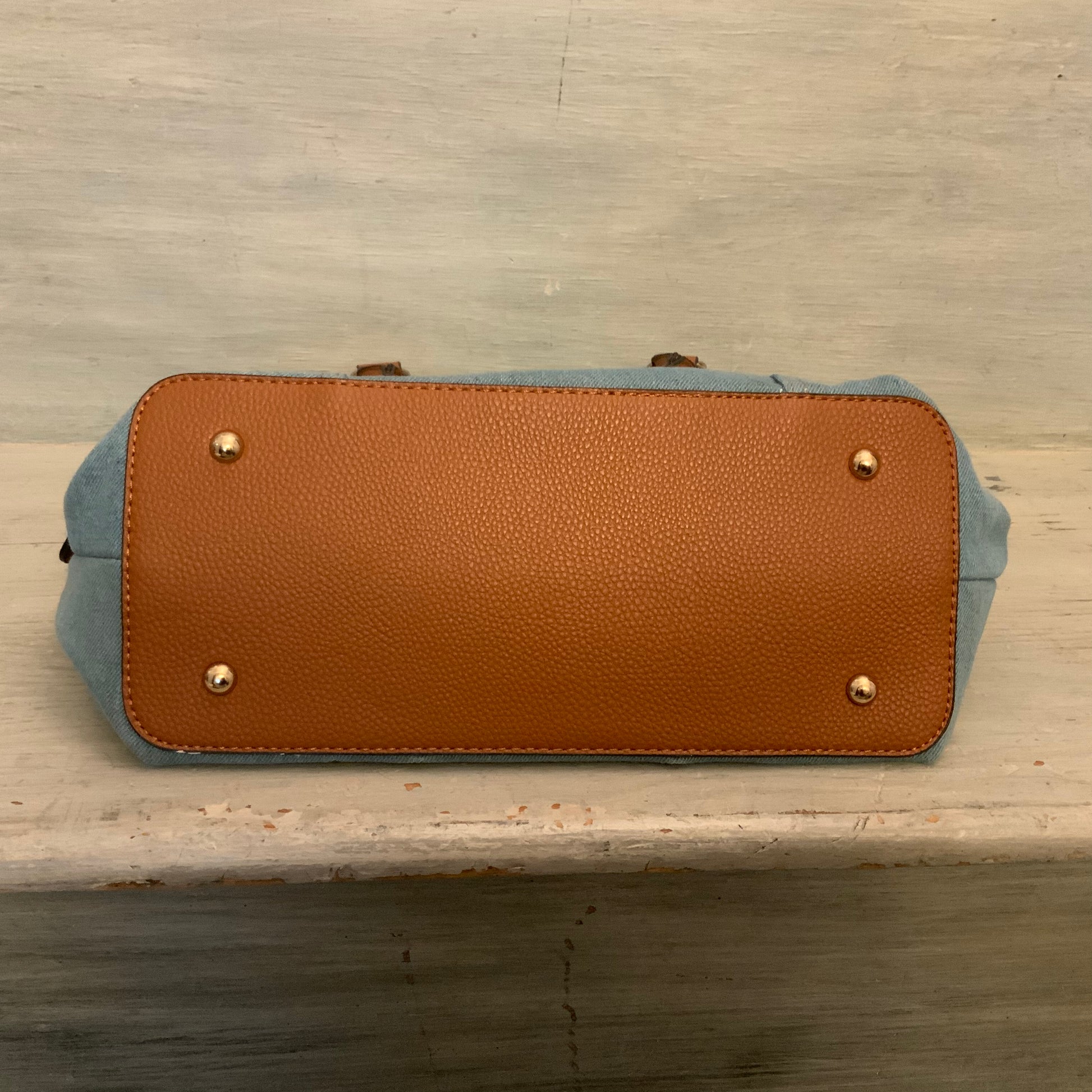Cato Embroidered Flower Print Denim Brown Faux Leather Handbag Purse